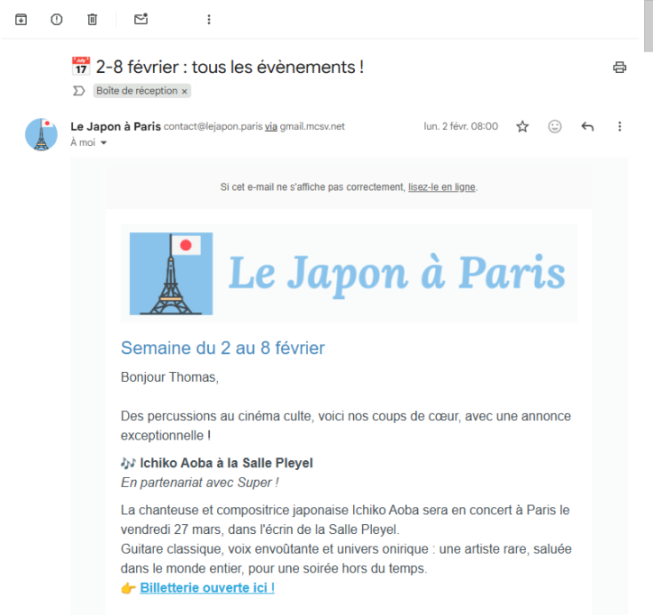Objectif : vendre des billets pour un concert de la musicienne japonaise Ichiko Aoba à Paris.